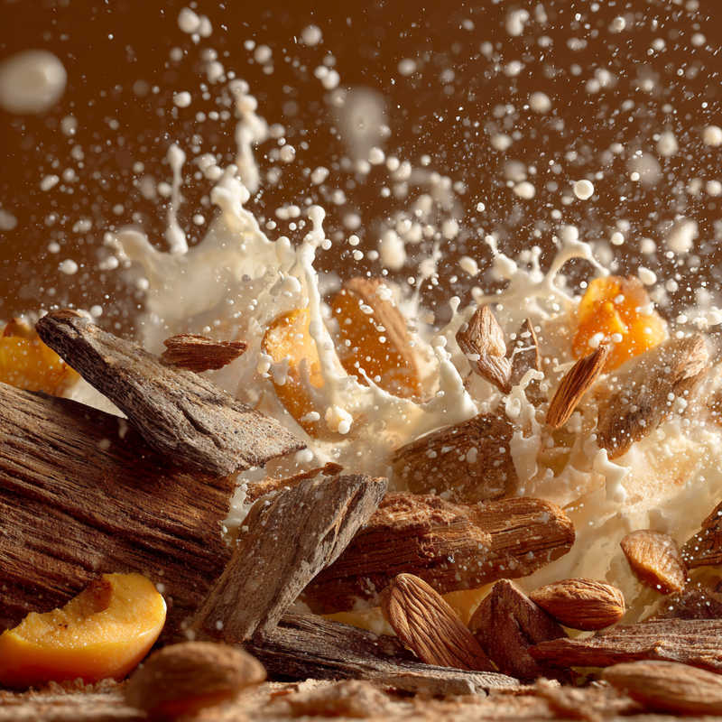 This luxury niche fragrance that opens with a tender, inviting blend of Peach Skin, creamy Milk STT, and a hint of Pink Pepper, creating a soft, luminous introduction that feels like the first sip of an velvety dessert. At its heart, the warmth of Rum notes, ripe Strawberry, and Vanilla entwines with Olibanum Bark and Oak Wood, evoking a rich, intoxicating embrace. The base lingers with Decadent Musks, leaving a sensual, velvety trail that is both cozy and alluring like the quiet intimacy of a late-night café rendezvous.